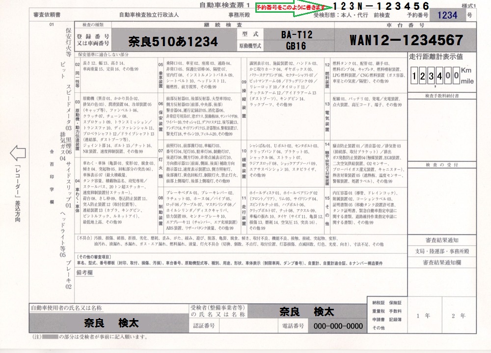 車検場の受付窓口の待合室には、書き方の例や、鉛筆が備え付けられていますので、書き方の例を見ながら落ち着いて書くことをお薦めします。